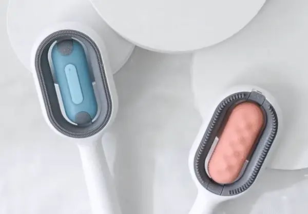 With its ABS and silicone construction that retains water, our brush not only brushes your pets but also cleans and massages them, providing a salon-like experience that helps alleviate grooming anxiety. To use it, simply open the section at the back of the brush, add water or your preferred grooming lotion, and let the brush do its magic with its system of holes that release the perfect amount of liquid during grooming.